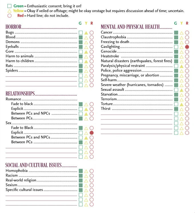 Consent in Gaming fillable chart published by Monte Cook Games.